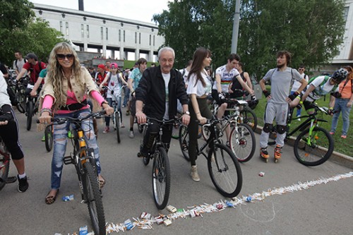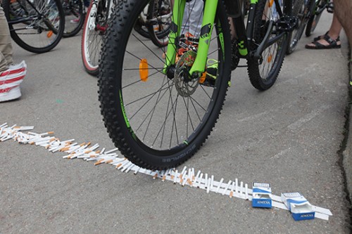 На Поклонной горе прошел велосипедный флешмоб «Велосипед лучше сигарет». Целью этого мероприятия является пропаганда велокультуры и любви к здоровому образу жизни. В акции приняло участие несколько десятков молодых людей, в их числе депутат московской городской думы Евгений Герасимов. Организаторы выложили стартовую линию из сигарет, каждый проезжающий по ним, доказывал свое отрицательное отношение к курению. Колонна, стартовав на Поклонной горе, финишировала в парке Фили.