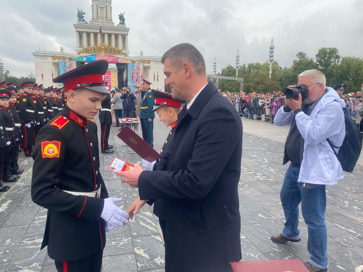 На Центральной аллее ВДНХ в субботу, 27 сентября прошла традиционная церемония посвящения в кадеты более 700 семиклассников Первого Московского кадетского корпуса. В их числе и учащиеся входящих в состав корпуса Навигацкой и Дипломатической кадетских школ, расположенных в Фили-Давыдкове и Кунцеве. Торжественную церемонию открыл Марш кадетов Москвы. Специально к этому дню его написал житель Крылатского Сергей Алтунин.