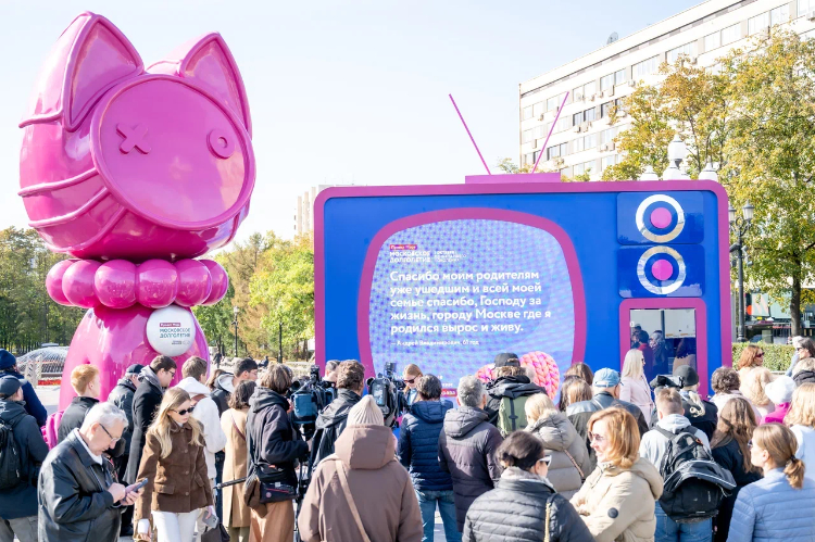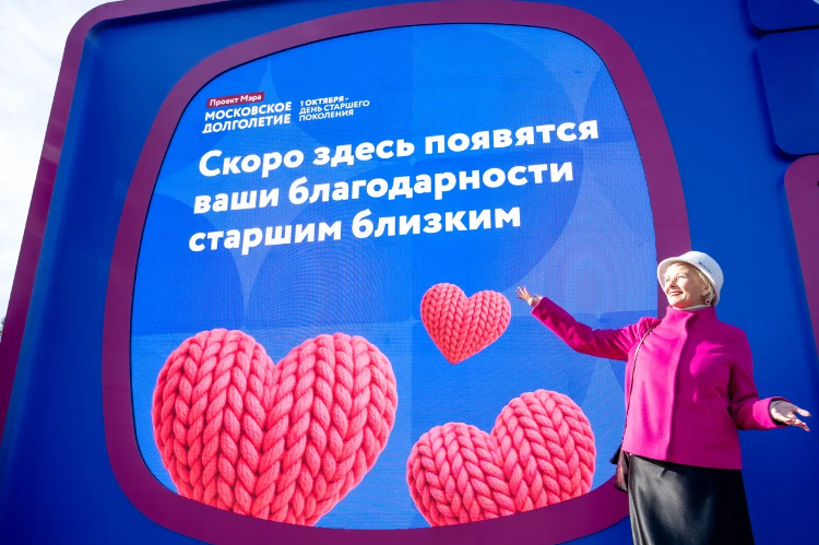 Одной из акций, организованных проектом «Московское долголетие», стала возможность любому желающему публично поделиться словами благодарности, любви и поддержки со своими родственниками. Как рассказал начальник Управления стратегии долголетия и специальных проектов Департамента труда и социальной защиты города Москвы Левон Авшарян на пресс-подходе, арт-инсталляция дает возможность написать послание, которое потом будет транслироваться как в Новопушкинском сквере, так и на медиафасадах по всему городу.
