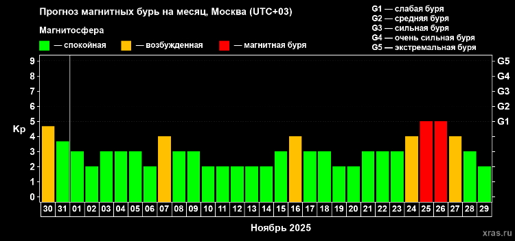 Календарь магнитных бурь на ноябрь 2025