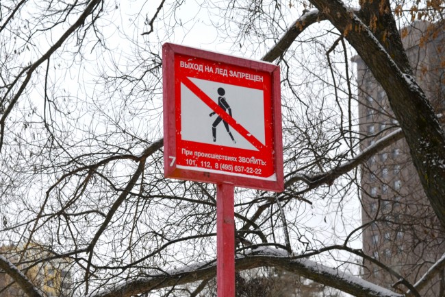 С наступлением холодов, в ожидании образования первого льда на водоёмах Западного административного округа Москвы приняты дополнительные меры по обеспечению безопасности горожан. Вдоль береговой линии реки Москвы, прудов и озёр округа разместили информационные щиты и сезонные предупреждающие знаки «Выход на лёд запрещён!».