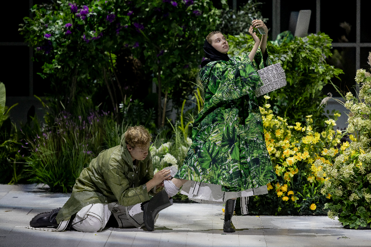Визуальное решение спектакля поражает не меньше, чем его содержание. Художник Евгений Шутов помещает действие в прозрачный павильон, похожий на теплицу. Почти весь спектакль по его стенам стекают капли дождя, окрашиваясь светом в разные цвета и создавая нужное настроение. Шутов создал на сцене целое инженерное сооружение из трех насосов, труб с капельницами и водосборников. Очевидно, Оля Мухина вместе с Евгением Каменьковичем точно задумали удивить зрителя.