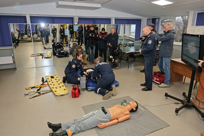 - отработали фиксацию пострадавших на спинальном щите для безопасной транспортировки, методы оказания первой помощи