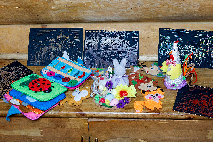 «Мне нравится расписывать дерево, готовлю к ярмарке разделочную доску. Надеюсь, ее купят, и она украсит чью-то кухню, а солдату на деньги от продажи приобретут что-то очень ему нужное», — поделилась воспитанница воскресной школы Лукерья.