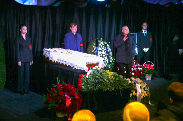Церемония прощания, предшествовавшая погребению, прошла в стенах родного для мастера Московского театра-студии и собрала цвет российского кинематографа.