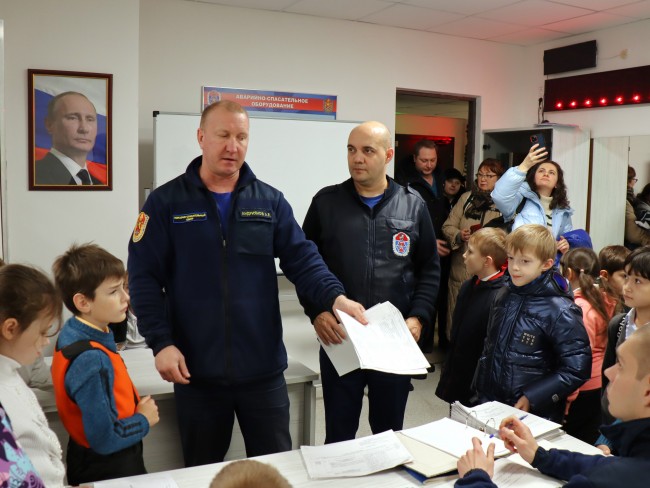 Далее последовала самая важная часть – теоретический блок. Пожарные в доступной форме рассказали школьникам о средствах спасения, правилах поведения у водоёмов зимой (почему нельзя выходить на неокрепший лёд), как правильно вызвать экстренные службы: чётко назвать адрес, описать ситуацию и не паниковать.