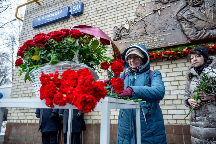 На Малой Филевской, 50, где почти три десятилетия жил Герой России Алексей Семенков, торжественно открыли мемориальную доску.