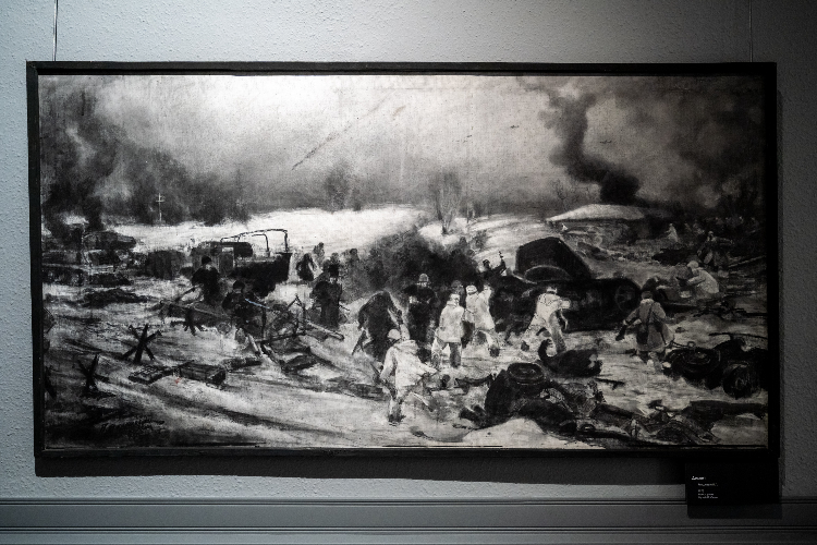 Финал экспозиции символичен. Картина Виктора Макеева «Подмосковный мотив» показывает то, что осталось от «непобедимой» армии вермахта. Покореженная немецкая техника, брошенная в снегах Подмосковья, торчит из сугробов, словно из-под белого савана. Это тихий, но мощный символ краха блицкрига.