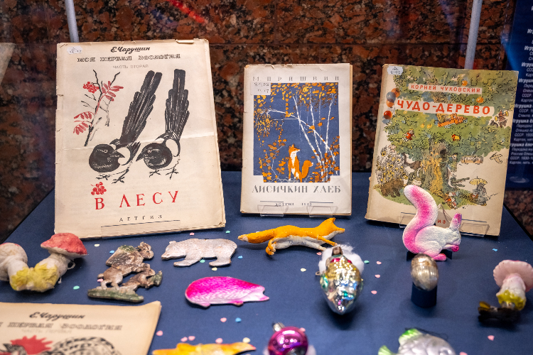 Всего в витринах представлено более 70 раритетов. Здесь нет пафоса, только тихая история страны, рассказанная через елочные украшения и детские книги.