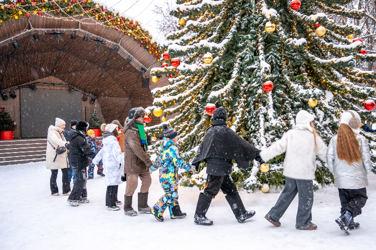 Площадка превращается в зимнюю сказку: здесь заводят хороводы вокруг нарядно украшенной ели, поют новогодние гимны и устраивают танцевальные батлы. Главными звездами становятся сами дети — самых смелых и артистичных аниматоры приглашают на сцену, где малыши дают авторские мастер-классы по танцам. И надо признать, у юных жителей ЗАО это получается отлично!