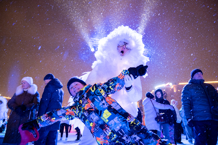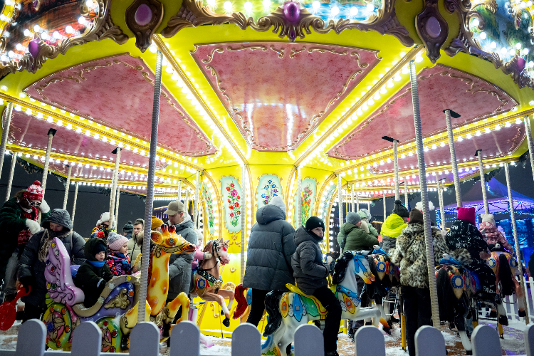 В теплых павильонах гостей удивляют песчаные скульптуры с лицами звезд: Александра Петрова и Федора Бондарчука в образах из нового фильма. На улице — народные забавы в городке «Закрутиха», мастер-классы с резцами и вечерние ледовые дискотеки.