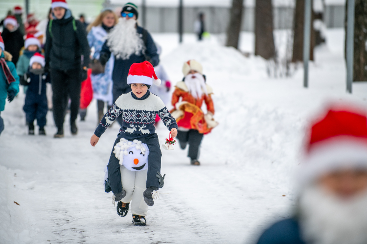 Спорт, сказка и улыбки: в детском парке «Фили» прошел праздничный забег Дедов Морозов