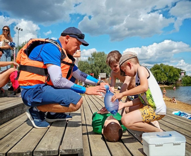 В работе в Московской городской поисково-спасательной службы на водных объектах активная профилактическая работа среди населения является одним из главных элементов обеспечения безопасности. Так, в 2025 году работники поисково-спасательной станции «Строгино» провели для школьников более 160 занятий по правилам безопасности на воде. Летом спасатели рассказывали о необходимости купаться только в разрешенных местах, а зимой – о недопустимости выхода на лед. Обращали внимание и на предупреждающие знаки, установленные вдоль берега водоемов: на знаках нанесена важная информация, которая понадобится жителям при возможном происшествии на водоеме – единый телефонный номер вызова экстренных служб «112», номер знака и телефон ближайшей спасательной станции. Также в рамках профилактической работы спасатели на воде проводили мастер-классы по сердечно-легочной реанимации и оказанию первой помощи пострадавшему.