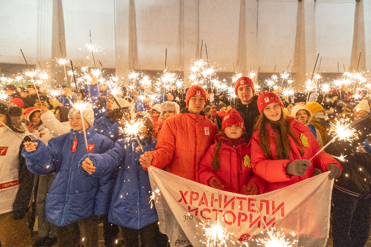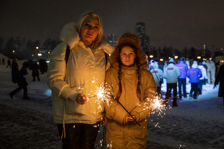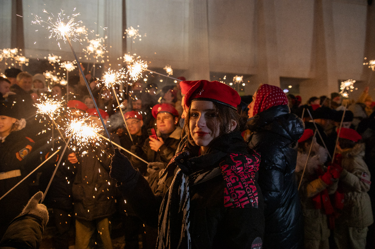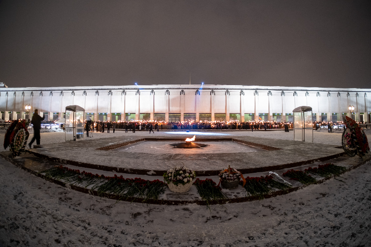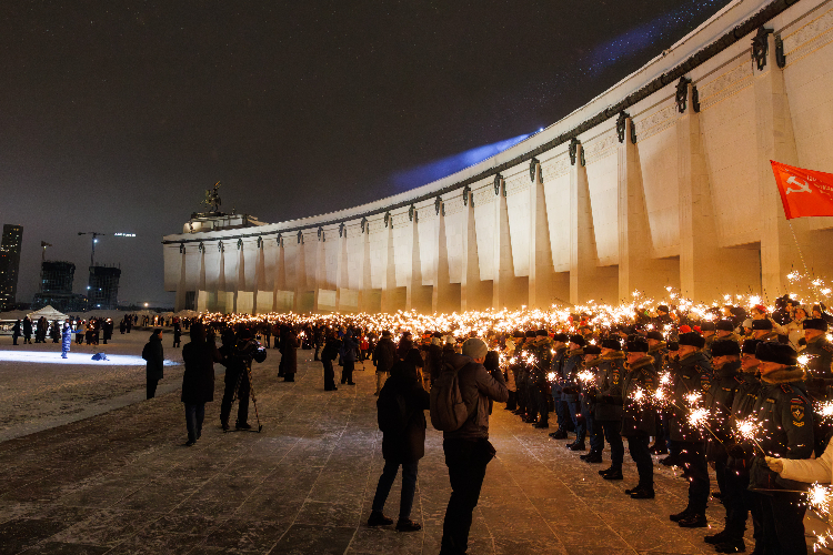 Так прошла акция «Искра Надежды» у Музея Победы, посвященная дню полного снятия блокады Ленинграда. Более пяти тысяч москвичей замерли в минуту молчания, а затем под звуки легендарной Седьмой симфонии Шостаковича одновременно зажгли бенгальские огни.