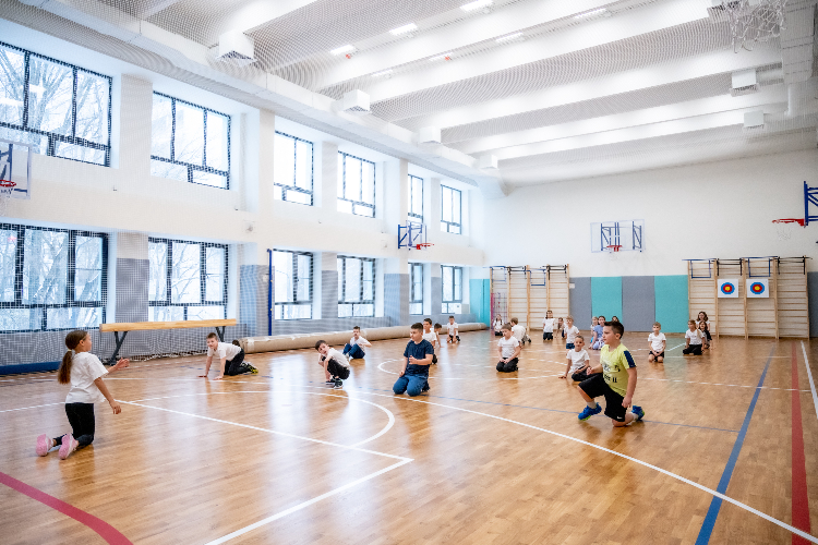Спортивный блок в обновленном здании разделен на две зоны: большой зал для командных игр и малый — для танцев и гимнастики. Размяться можно на ковриках или у балетного станка. Девочкам особенно нравится заниматься хореографией, пока мальчики соревнуются в прыжках.
