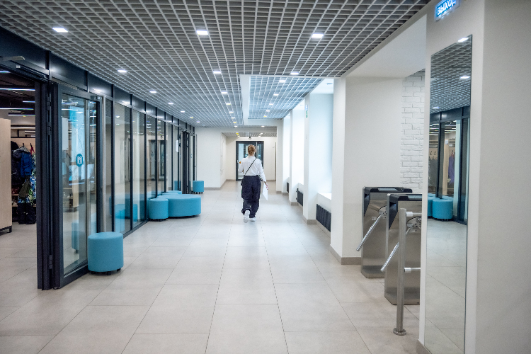 Вместо привычного гардероба здесь персональные локеры с кодовыми замками, а в коридорах — уютные пуфы, зоны коворкинга и кабинки для зарядки гаджетов. В объектив попали и «умные» классы с интерактивными панелями, и научная лаборатория с микроскопами, и даже балетный станок в залитом светом спортзале. Сегодня после обновления по программе «Моя школа» открыто уже 55 зданий, среди которых и здание образовательного центра «Протон» для начальных.