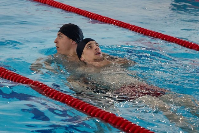 Основная часть обучения – практические занятия. Первое такое занятие всегда проводится в бассейне, где слушатели отрабатывают действия по спасению пострадавших и их транспортировке с элементами оказания первой помощи. Поскольку спасателям приходится работать в воде при плохой видимости, одним из заданий является целеуказание и поиск предмета на дне бассейна.